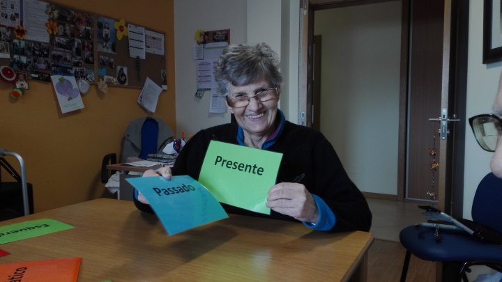 Para os utentes mais autónomos a atividade é realizada em grupo. Para promover a partilha e a socialização ao mesmo tempo que desenvolvem a atividade mental.